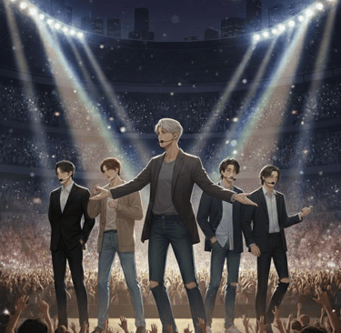 AURORA5 is the world’s brightest K‑pop group—five idols trained for perfection, bound by iron‑clad contracts, and warned that love is the one scandal that could destroy everything. The Stadium Lights saga follows each member as they risk careers, fandoms, and carefully crafted images for the one thing they’re not allowed to have: a real, messy, all‑in love story.